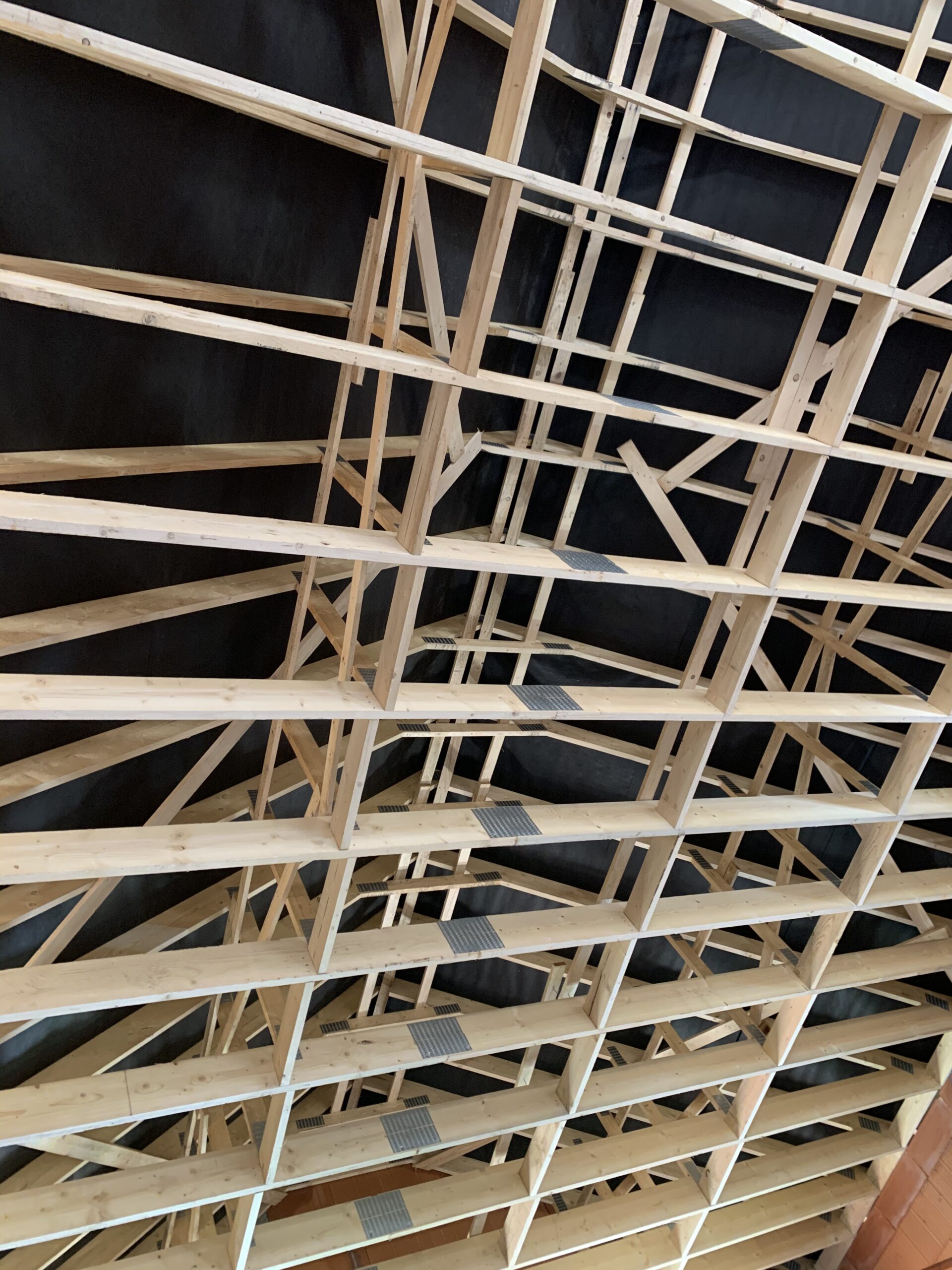 - La Charpente Industrielle : Nous avons fourni et posé une charpente industrielle de qualité, calculée et dimensionnée selon les normes DTU en vigueur. La charpente industrielle, fabriquée en usine avec des fermettes préfabriquées, offre l’avantage d’une grande précision d’assemblage et d’une résistance optimale. Cette structure constitue le squelette de la toiture, supportant l’ensemble de la couverture et distribuant uniformément les charges. Notre équipe assure une pose méthodique et conforme aux règles de l’art, garantissant la stabilité et la pérennité de l’ouvrage.