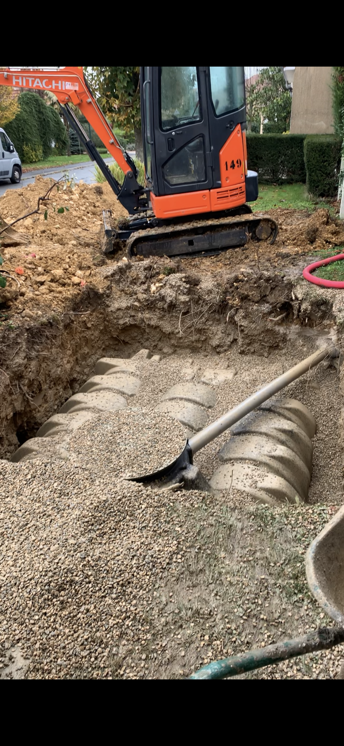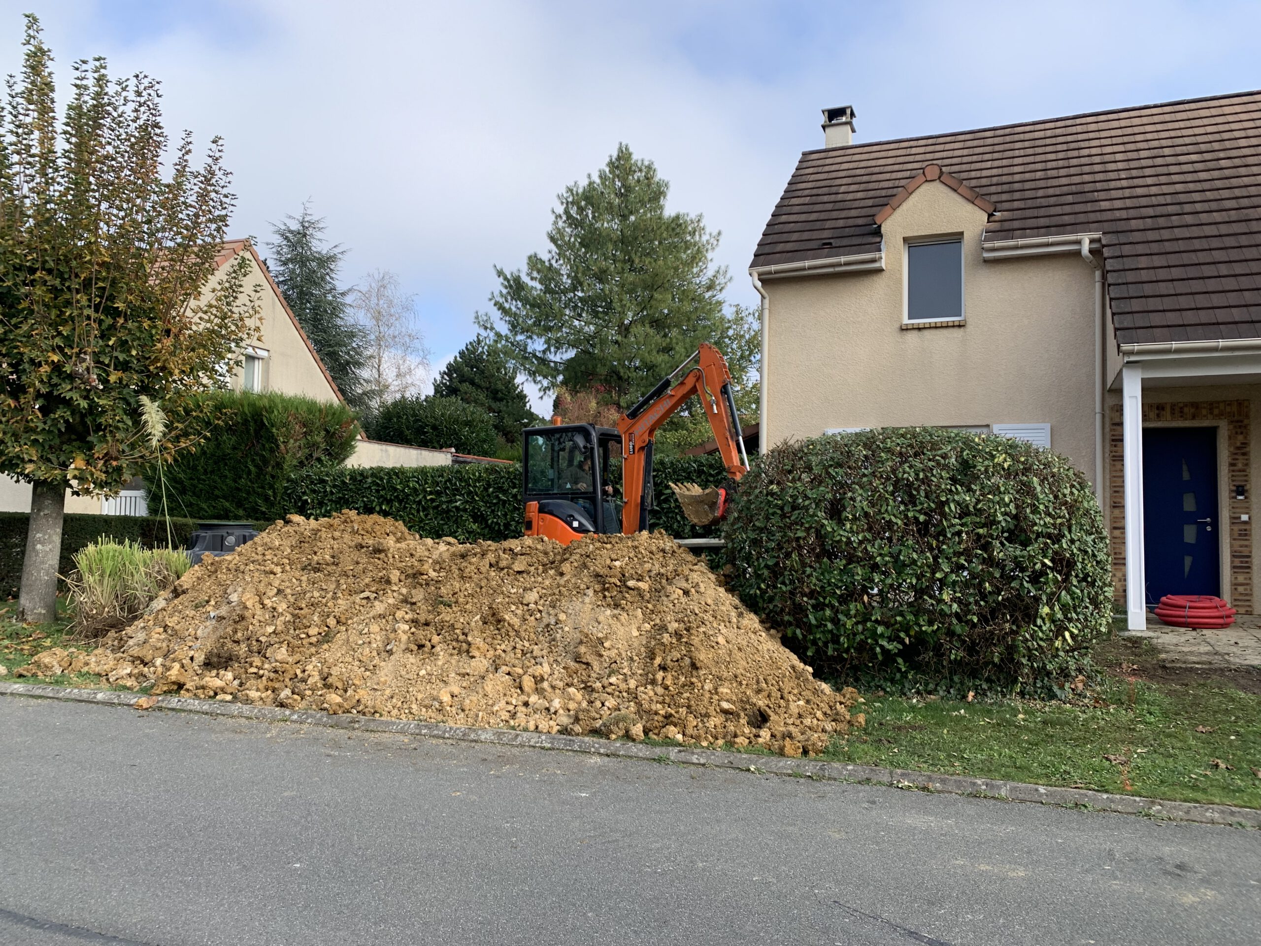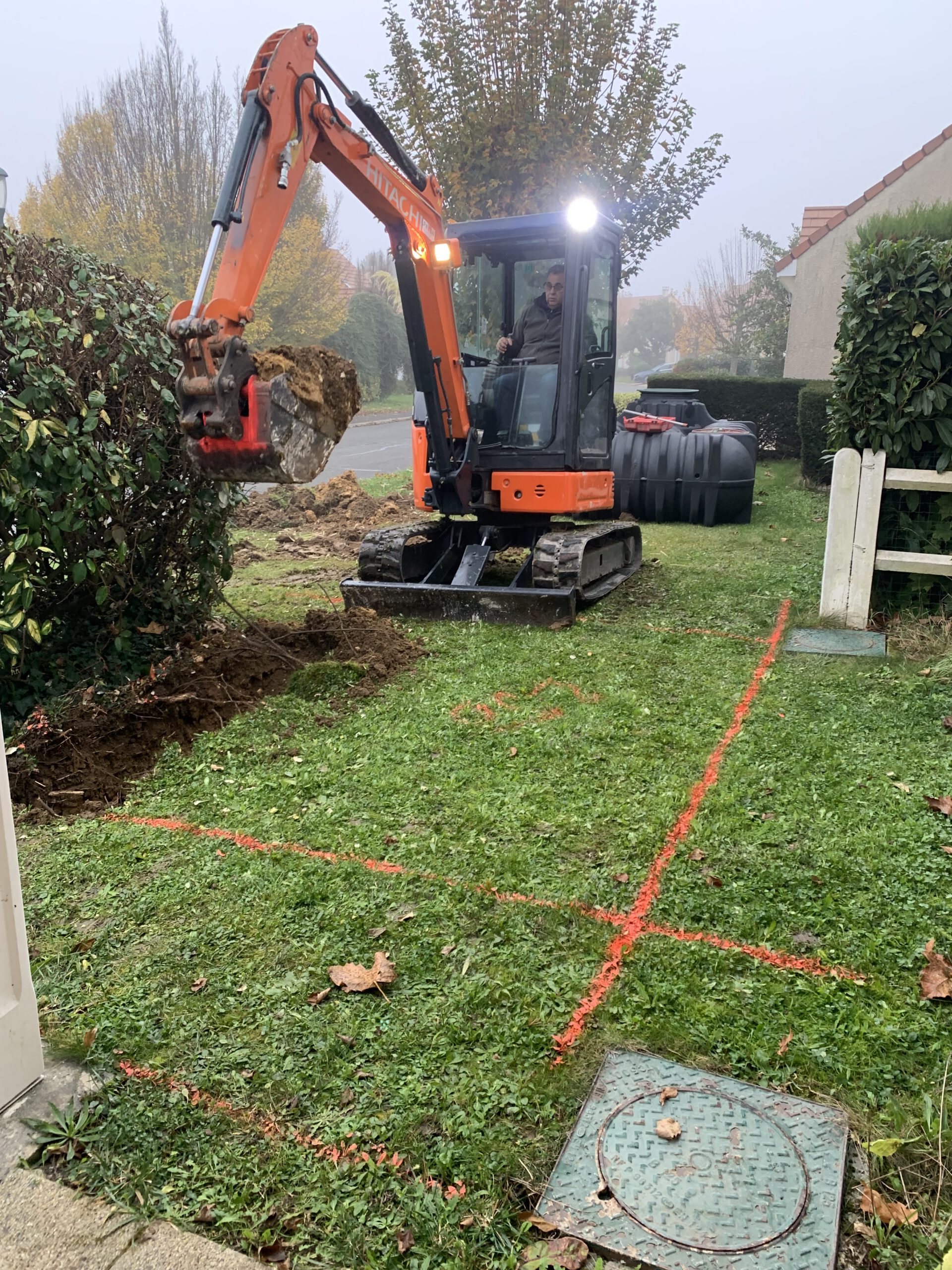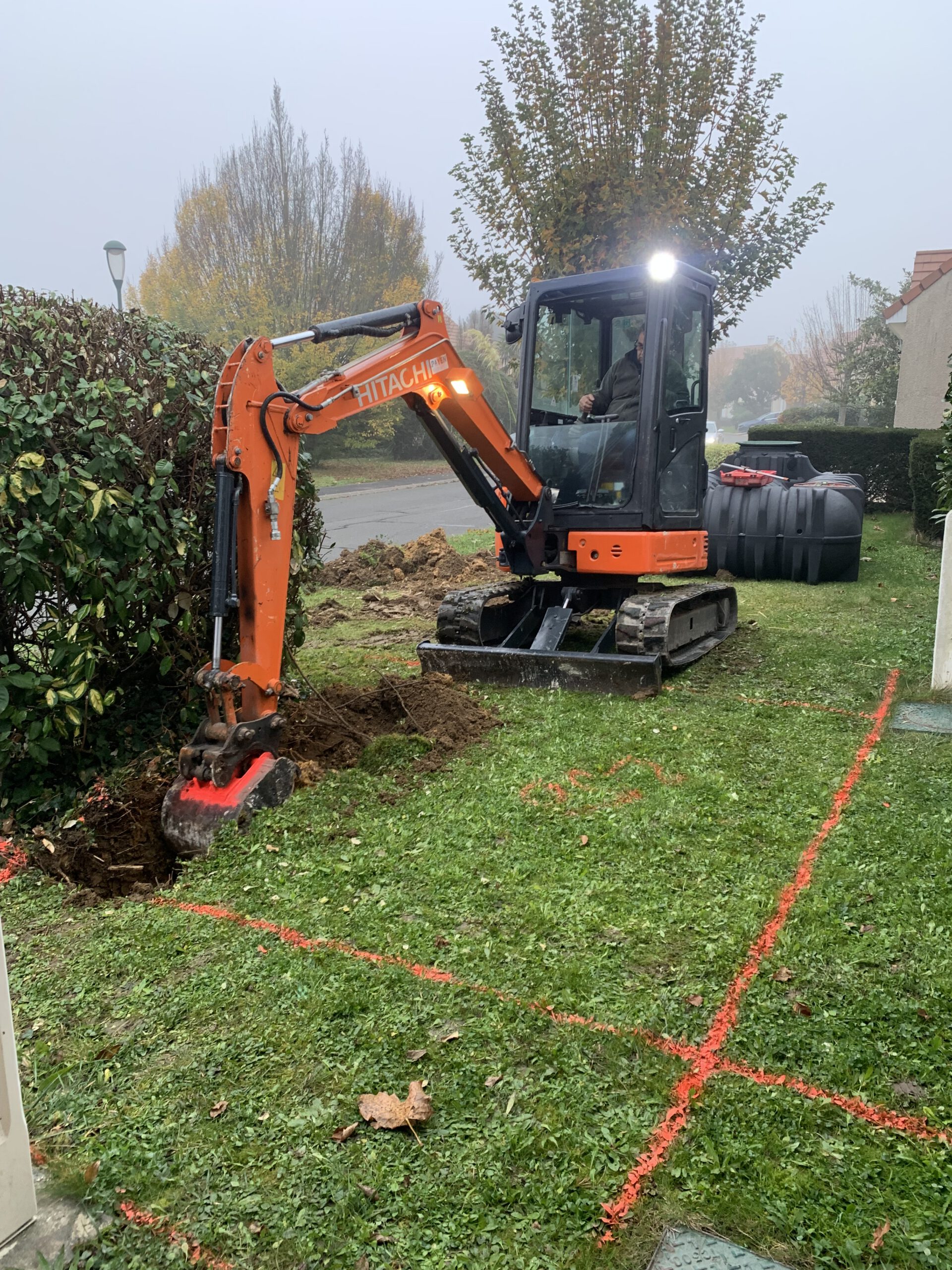 - L’Excavation : Nous avons utilisé une excavatrice pour creuser un trou aux dimensions précises, nécessaires pour accueillir la cuve. Ce processus a été suivi avec une attention méticuleuse pour prévenir tout dommage aux infrastructures environnantes.