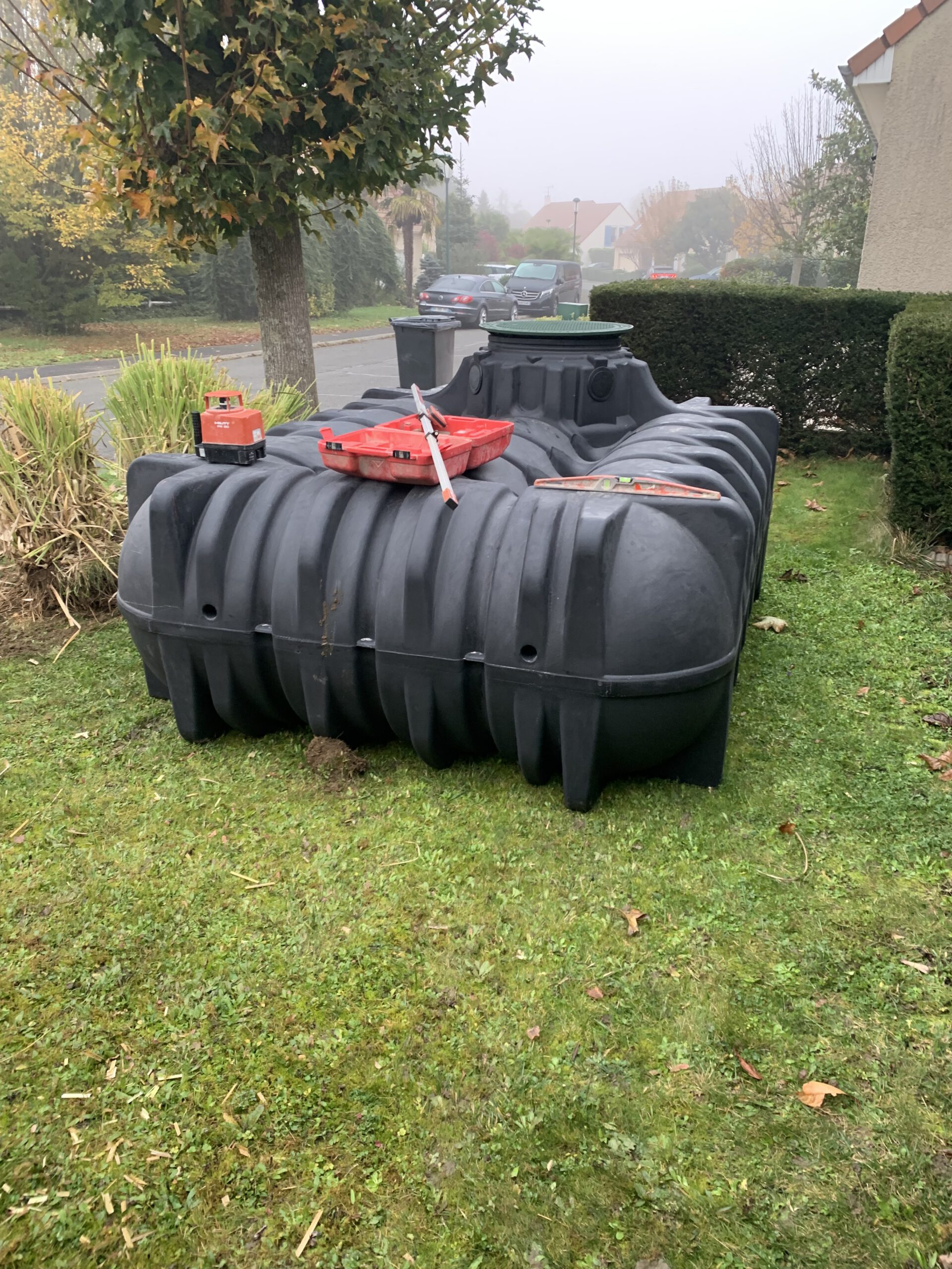 - Le Positionnement de la Cuve : La cuve de récupération, avec sa capacité de 5000 litres, a été soigneusement positionnée dans l’excavation préparée. Chaque détail, de l’orientation à l’ancrage, a été pris en compte pour optimiser la collecte et l’utilisation de l’eau de pluie.