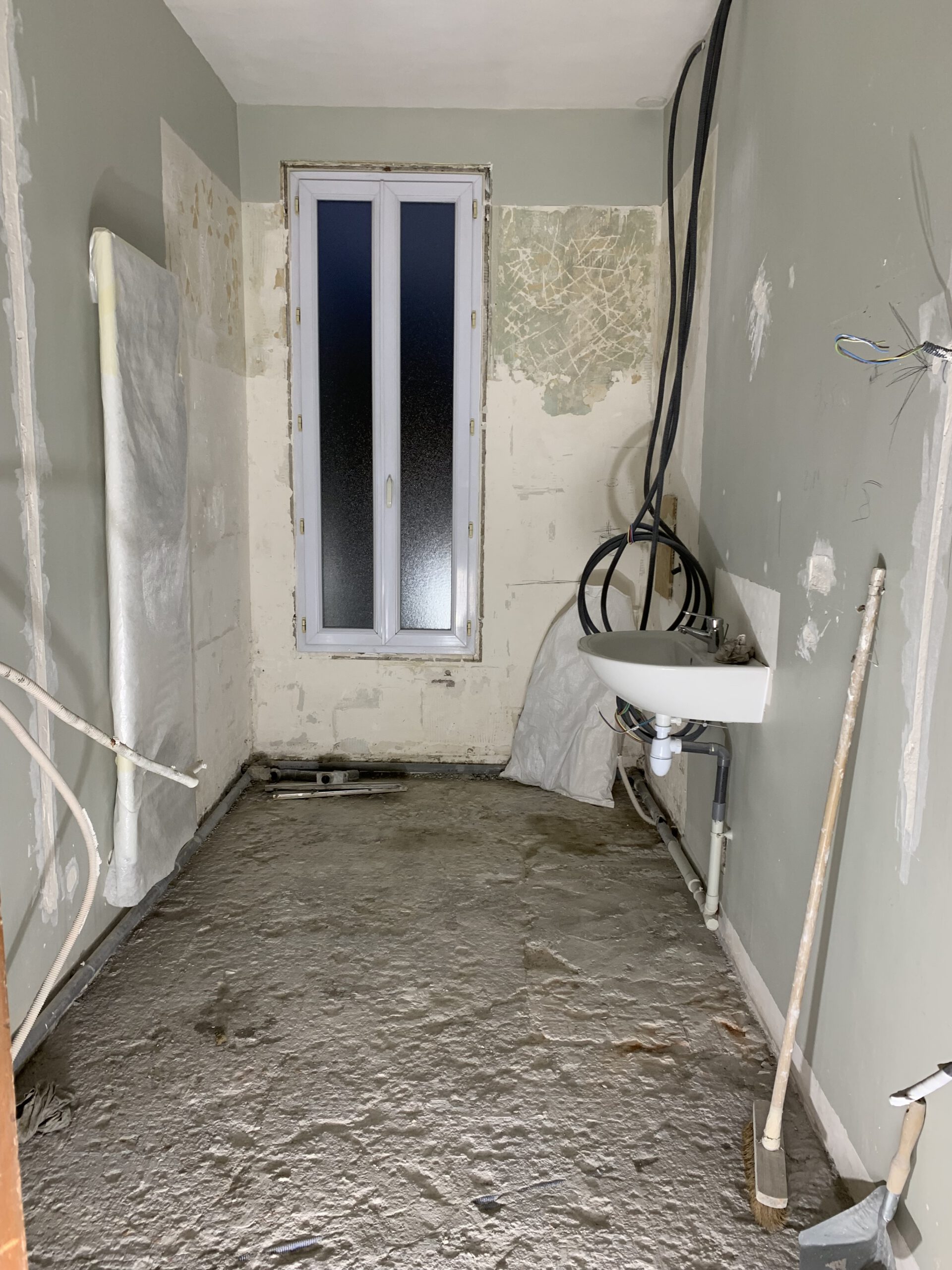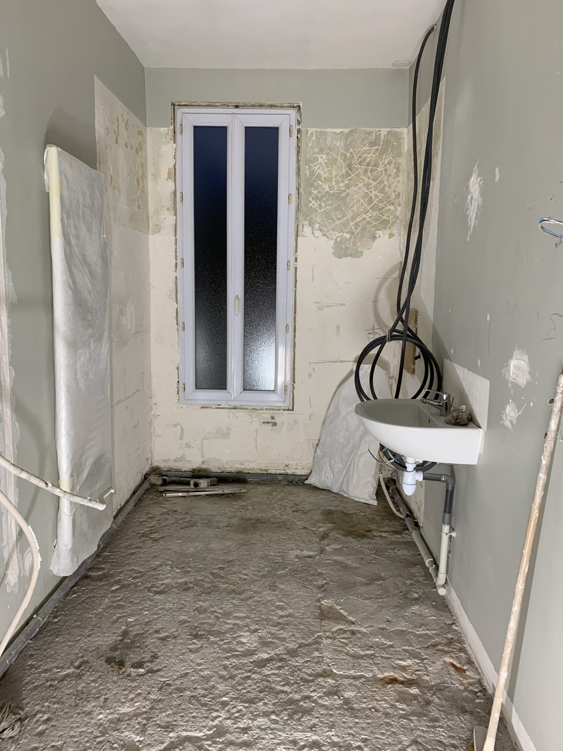 Les images avant rénovation montrent une salle de bain non optimisée. Un défi parfait pour Design & Couleurs, où chaque espace possède le potentiel d’une œuvre d’art.