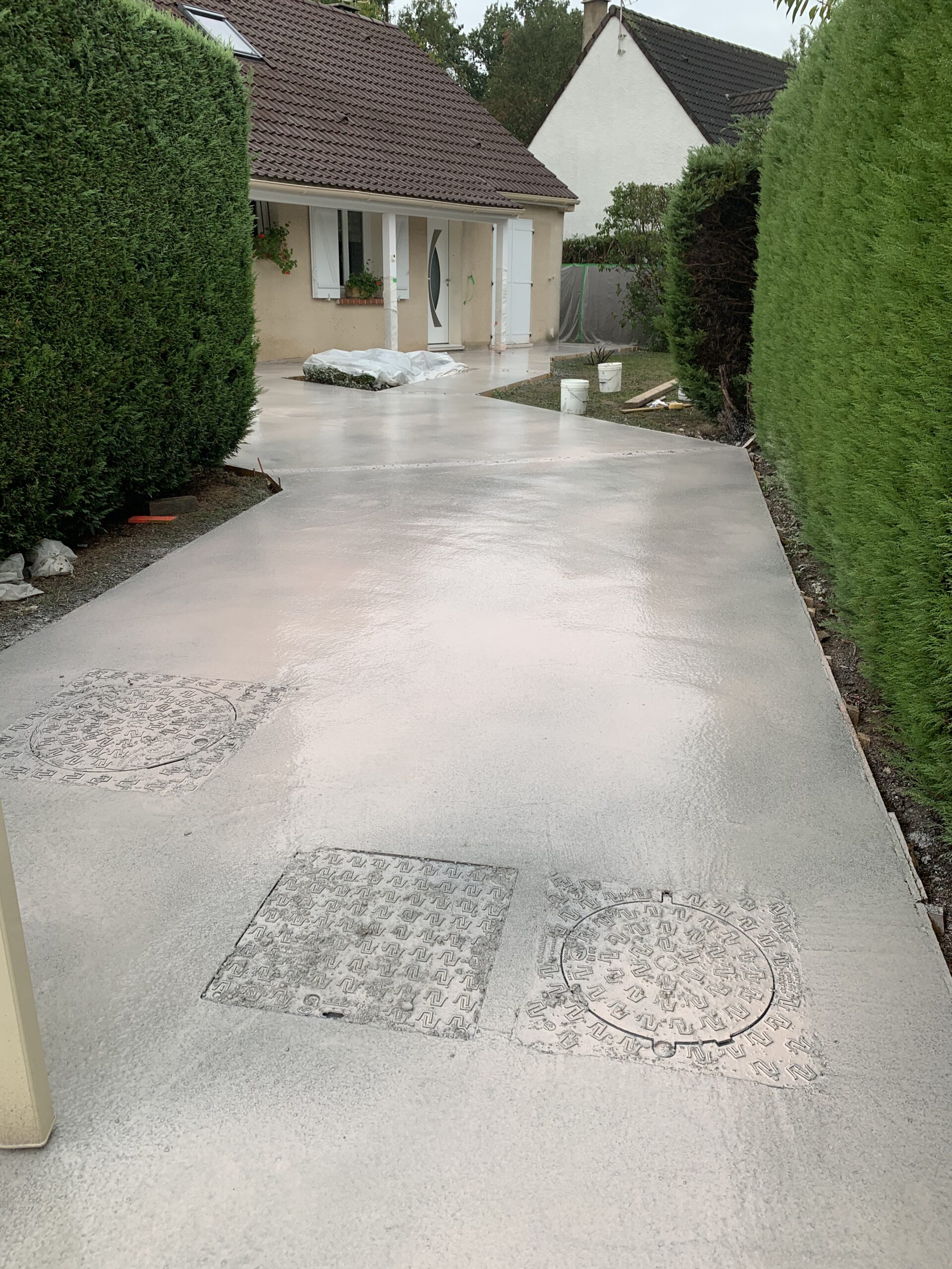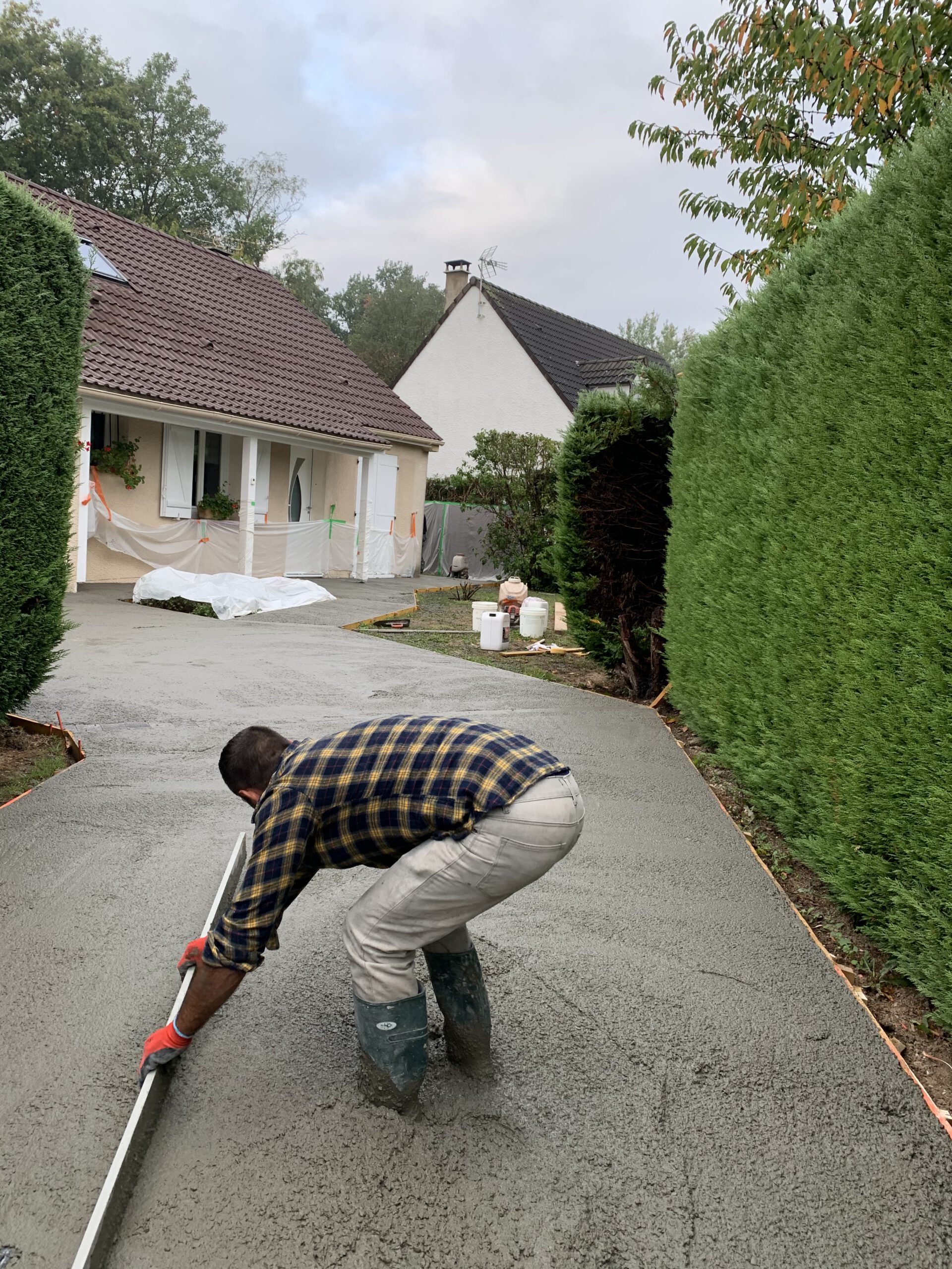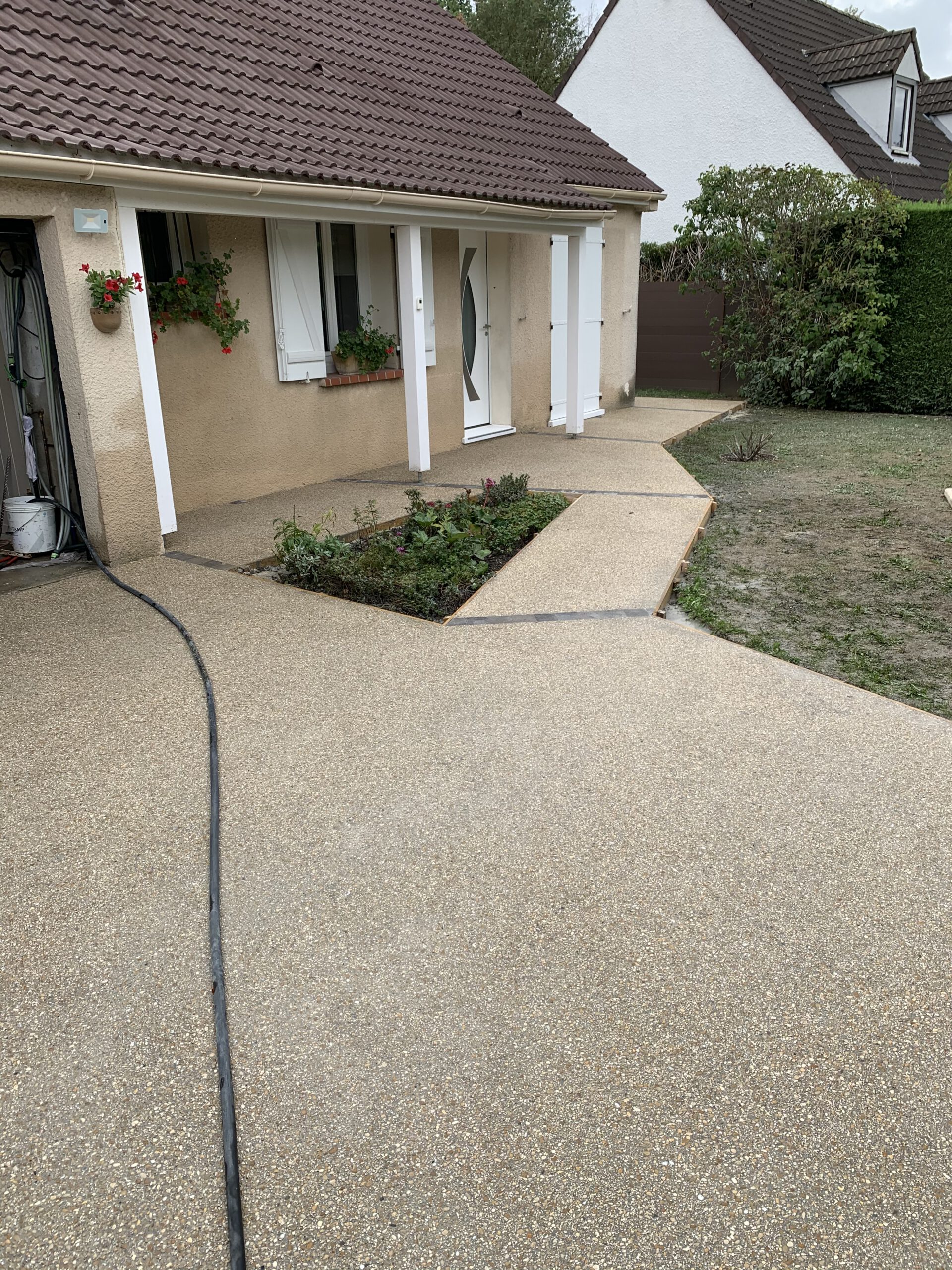 Étape 6: Séchage et Finition La terrasse a été laissée à sécher, un processus qui permet au béton de durcir complètement et de révéler sa couleur finale. Une fois sec, nous avons procédé aux finitions, assurant une intégration parfaite avec l’environnement de la maison.